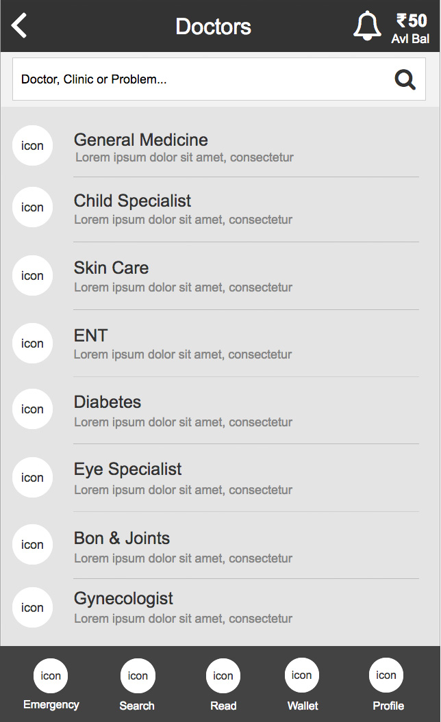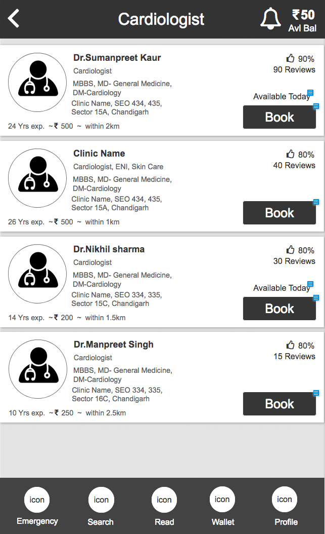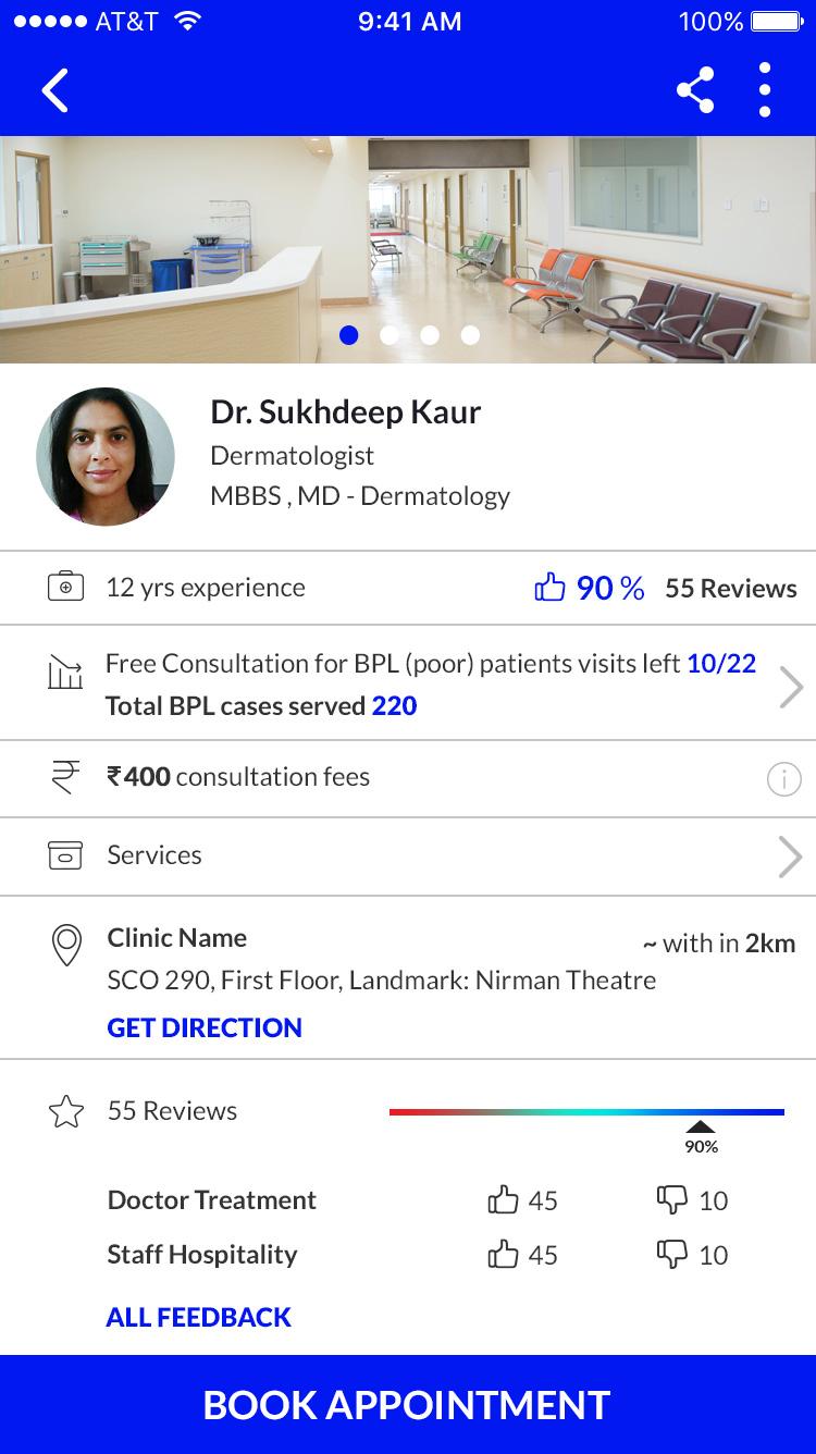 The current doctor searching services are not well integrated with real user journeys. A better example could be Justdial, where users could get influential factors like distance, rating, and the price at a glance and eases the decision making.