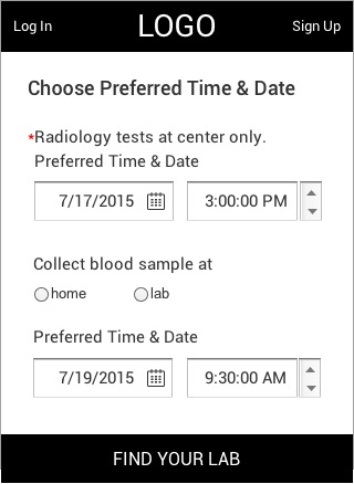 With Our paths mapped out, We needed to decide where the elements would be placed on the screen. We first started sketching in our creative studio. Using the user flows as our guide, We sketched out each individual screen, signifying buttons and other elements. Each drawing led us closer and closer to the most sensible and effective layout. Starting the wireframe process using low-fidelity sketches, helped me test out different positioning and determine what type of layout works best for completing user goals. The classification of the filter test categories was seen as intuitive by users, except for the first category “sort by” as one tester mentioned how the category title is unclear and not specific enough like the rest of the categories. While examining the lab profile, one user showed disappointment and confusion, when it came to the heart icons symbolizing rating.