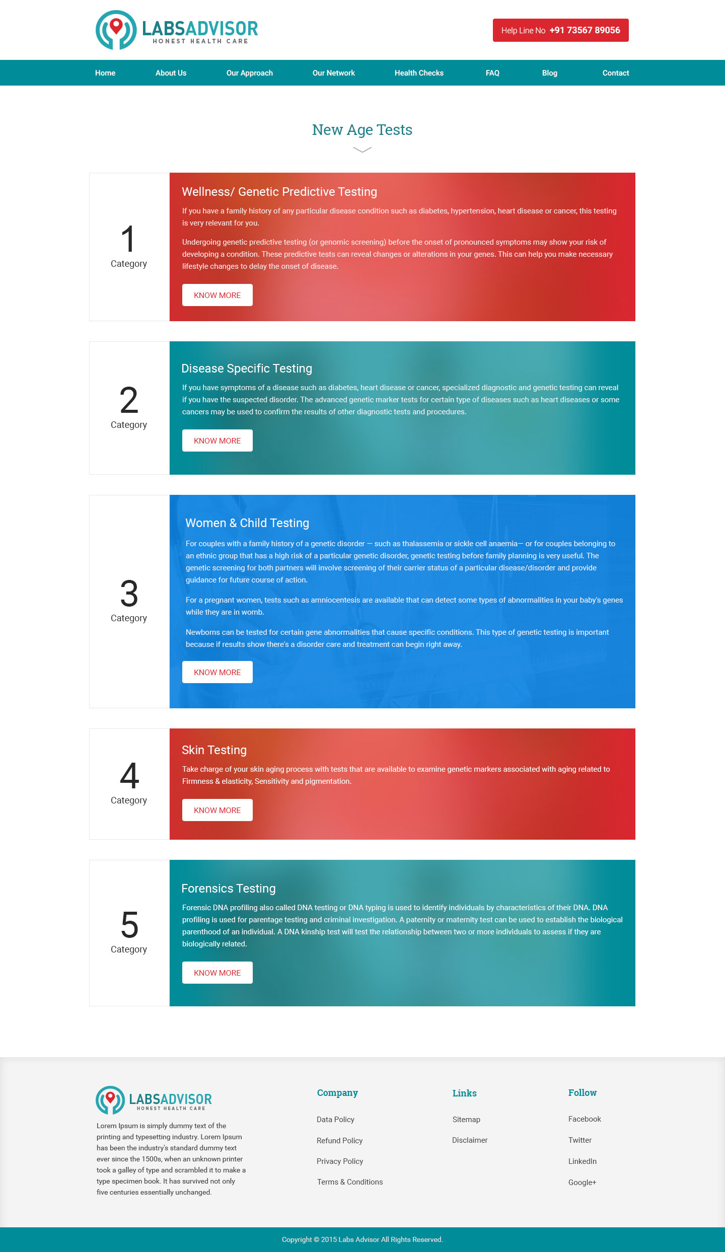 LabAdvisor is a group of professionals passionate about delivering quality healthcare to the average Indian. They help patients in need of pathology or radiology discover their neighborhood labs and select one which specifically caters to their needs – be it a certain kind of testing, distance from their homes, the convenience of home collection, or an affordable price. The projects involved building their user-centric website, user research, mobile responsive design, social media marketing management, and a native mobile app for Android and iOS.